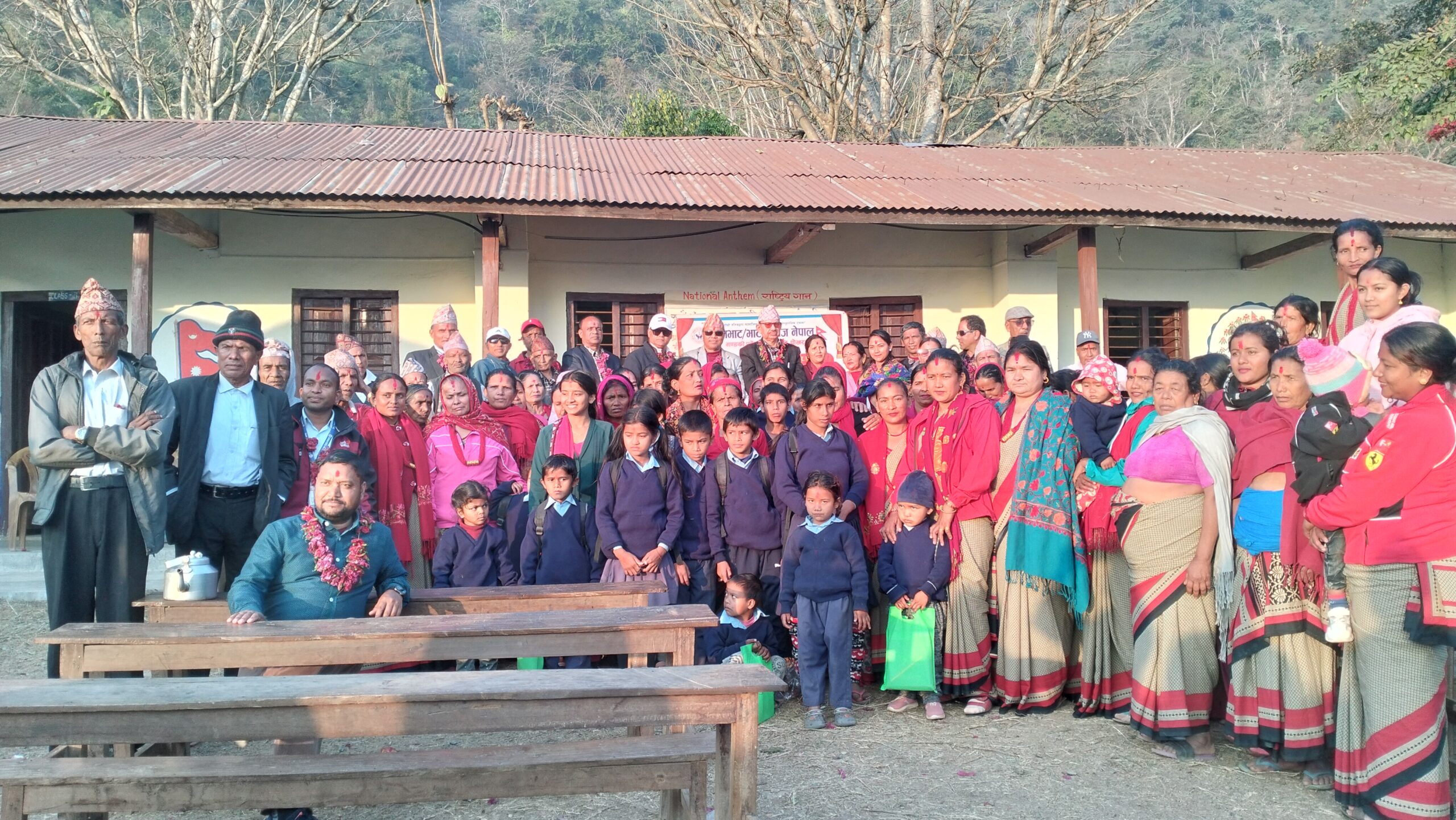 कक्षा १ देखि ५ सम्म अध्ययन गर्ने १७ जना विद्यार्थीहरुलाई स्कुल पोसाक सेट, स्विटर, कपि, कलम प्रदान गरिएको थियो ।
