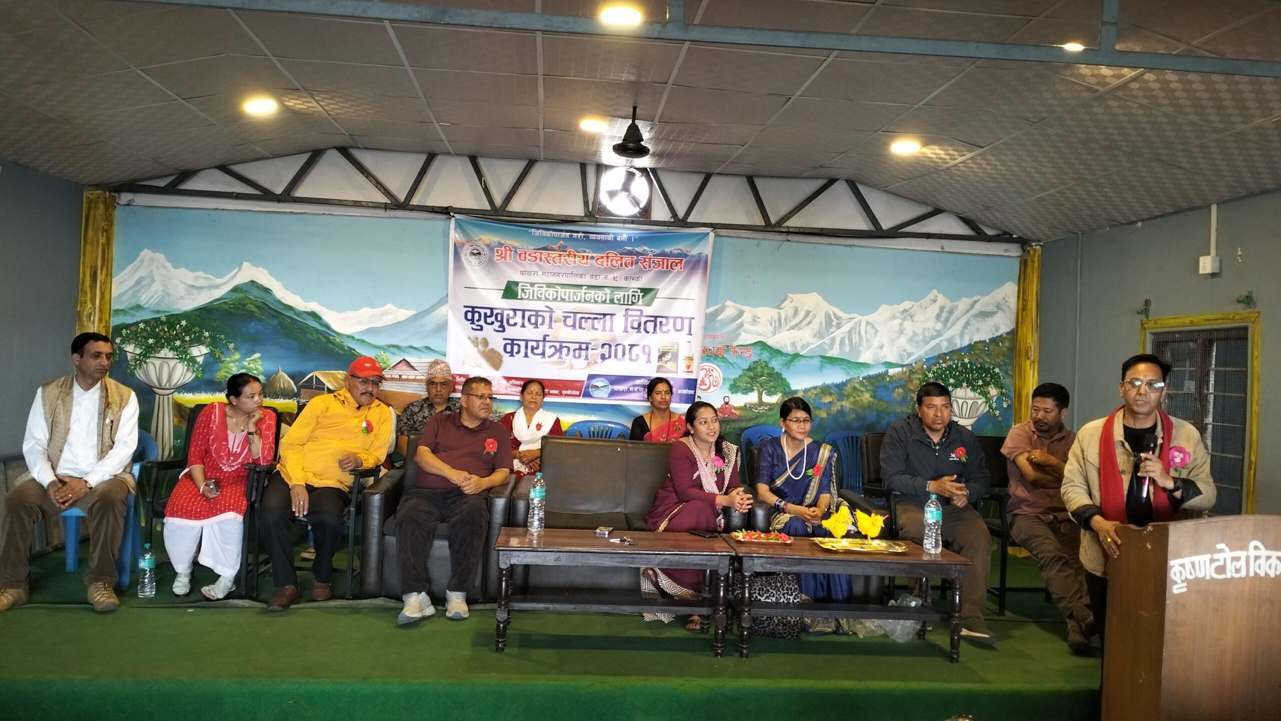 पोखरा । वडास्तरिय दलित संजालको आयोजना र पोखरा महानगरपालिका वडा नं. ९ को सहकार्यमा वडा नं. ९ का ५० दलित तथा आर्थिक स्थिति कमजोर घर परिवारलाइ प्रती परिवार १० वटा कुखुराका चल्ला र बितरण गरिएको थियो ।