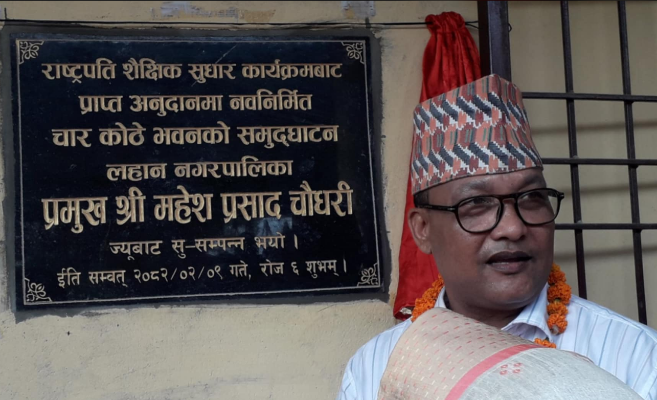 सिरहा ९ जेठ । लहान नगरपालिका–३ मा अवस्थित ललकु मा वि को नवनिर्मित चार कोठे पक्की भवन र मञ्चको शुक्रबार लहान नगरपालिकाका नगरप्रमुख महेश प्रसाद चौधरीद्धरा उद्घाटन गरिएको छ।